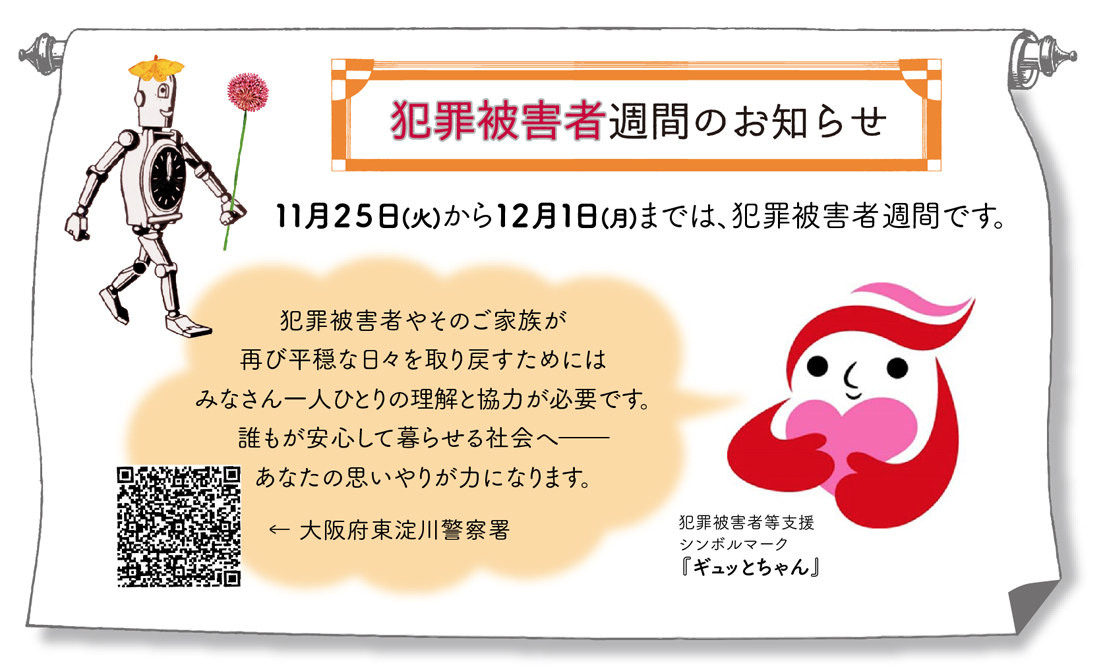 Copyright © 2008-2023 Kayo Yamamoto Allright Reserved. 「「犯罪被害者週間」のお知らせチラシ」 ご縁があってデザインに協力させていただきました。犯罪被害者等支援シンボルマーク『ギュッとちゃん』に関してはコチラをご覧ください。